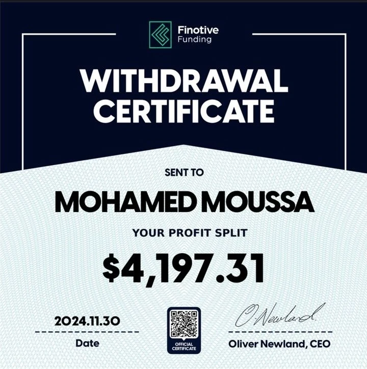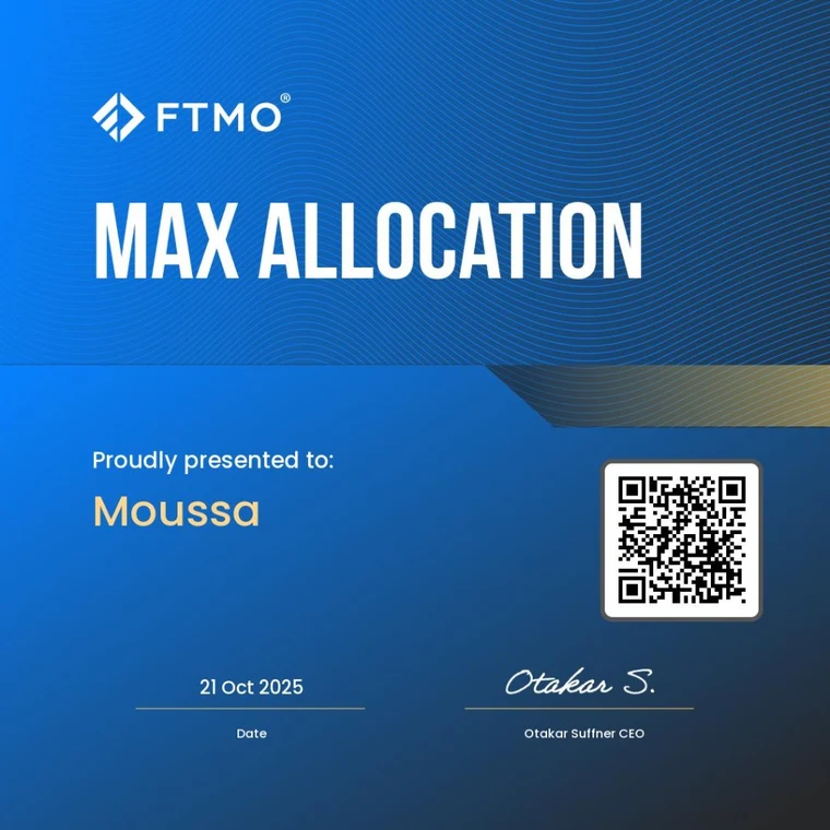 “أتداول منذ ٣ سنوات. تعلّمت بشكل أساسي من ICT ثم انتقلت إلى آخرين لأسباب واضحة، لكنني استخدمت مفاهيم ICT بشكل رئيسي. بعد فترة، وجدت موسى. أسلوبه في التداول طابق ما كنت أحاول تحقيقه ونتائجه تكلّمت أكثر من الكلمات. حقاً أسطورة. انضممت إلى مجتمعهم قبل ٤ أشهر. اجتزت أول تحدي PropFirm لي هنا. هؤلاء ساعدوني على تحقيق الاتساق والنتائج التي كنت أحلم بها منذ ٣ سنوات. اسطوره حقيقية كشخص ومتداول.”